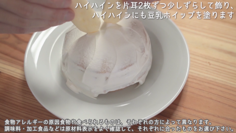 なお、豆乳ホイップを塗りすぎると、デコレーションができなくなるので、ある程度残しておいてください。